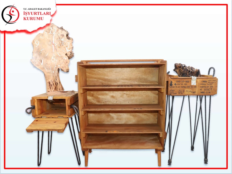Doğal ağaç işleri ve mobilya dekorasyon iş kolumuz 2017 yılında hizmete başlamıştır. 250 metrekare alana kurulu olup tasarım, üretim ve epoksi döküm bölümlerinden oluşmaktadır. İşkolumuzda 1 Atölye Şefi, 1 İnfaz ve koruma Memuru eşliğinde 5 hükümlüye topluma kazandırma ve meslek edinme projesi kapsamında mesleki eğitim ve öğrettim verilmektedir.